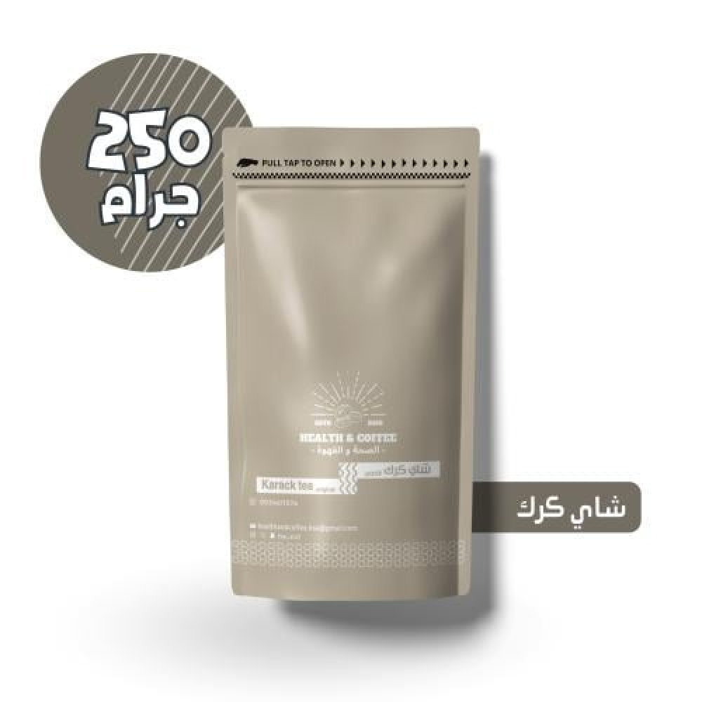 هو مشروب تقليدي غني بنكهة قوية يجمع بين الشاي الأسود، الحليب، والتوابل مثل الهيل، الزعفران، والقرنفل. يتميز هذا الشاي بمذاقه الحلو والمذاق العميق الذي يأتي من غلي المكونات معًا، مما يضفي عليه طابعًا مميزًا. يُعرف شاي الكرك في بعض البلدان الخليجية وجنوب آسيا، ويعتبر خيارًا مثاليًا لاحتساء مشروب دافئ في أي وقت من اليوم. يتم تحضيره عادة بشكل مكثف، مما يجعل كل رشفة مليئة بالدفء والتوابل المنعشة.